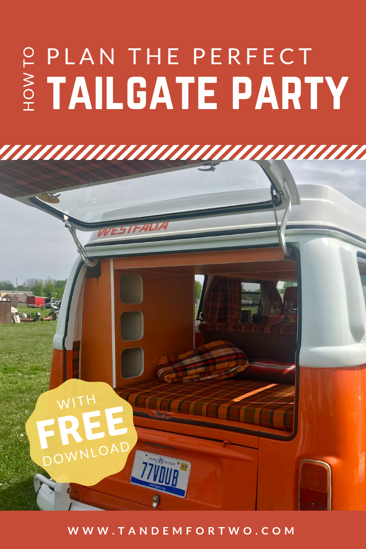 The easiest is to drape the back of your truck or SUV with a tablecloth and set the stage with your food, drinks, and condiments.